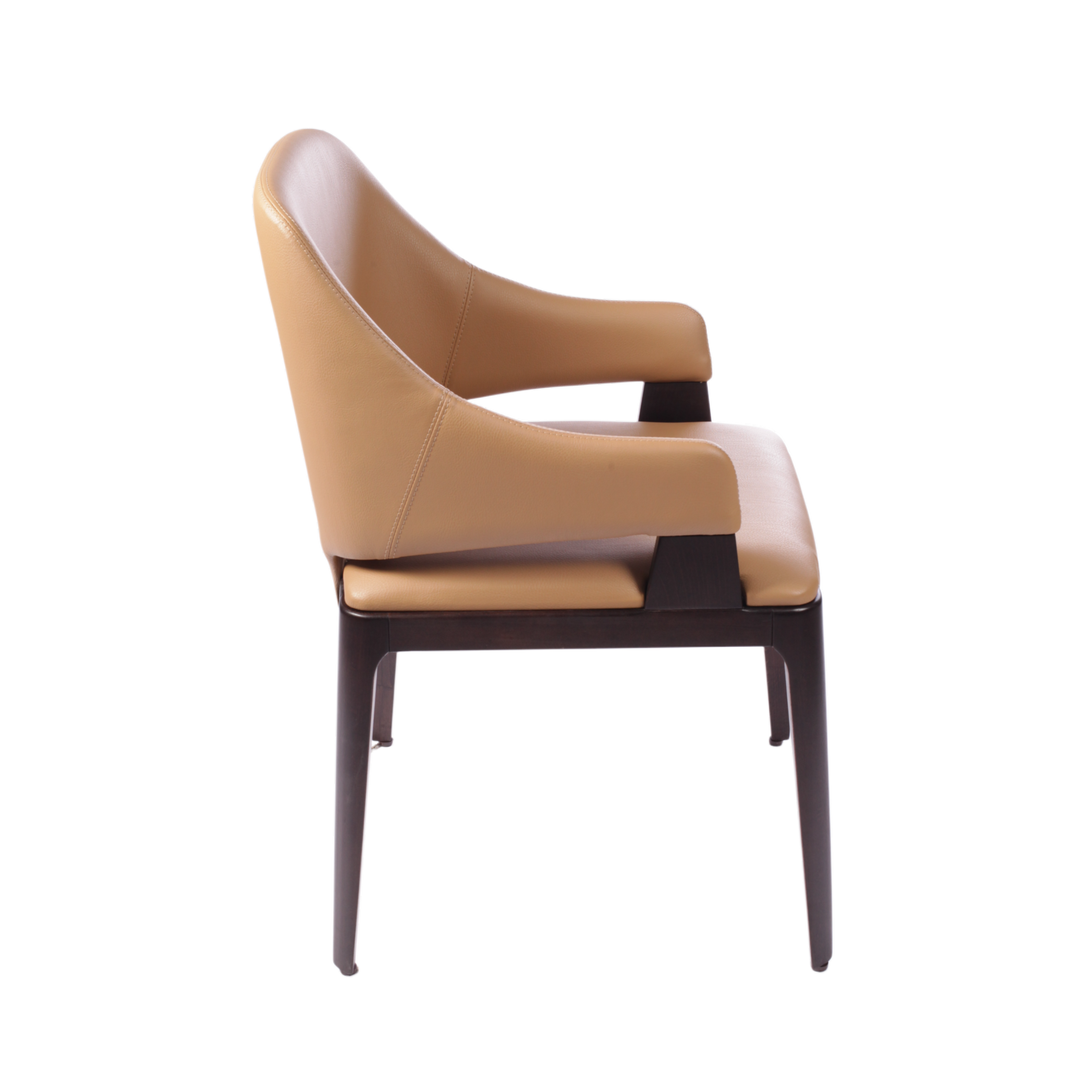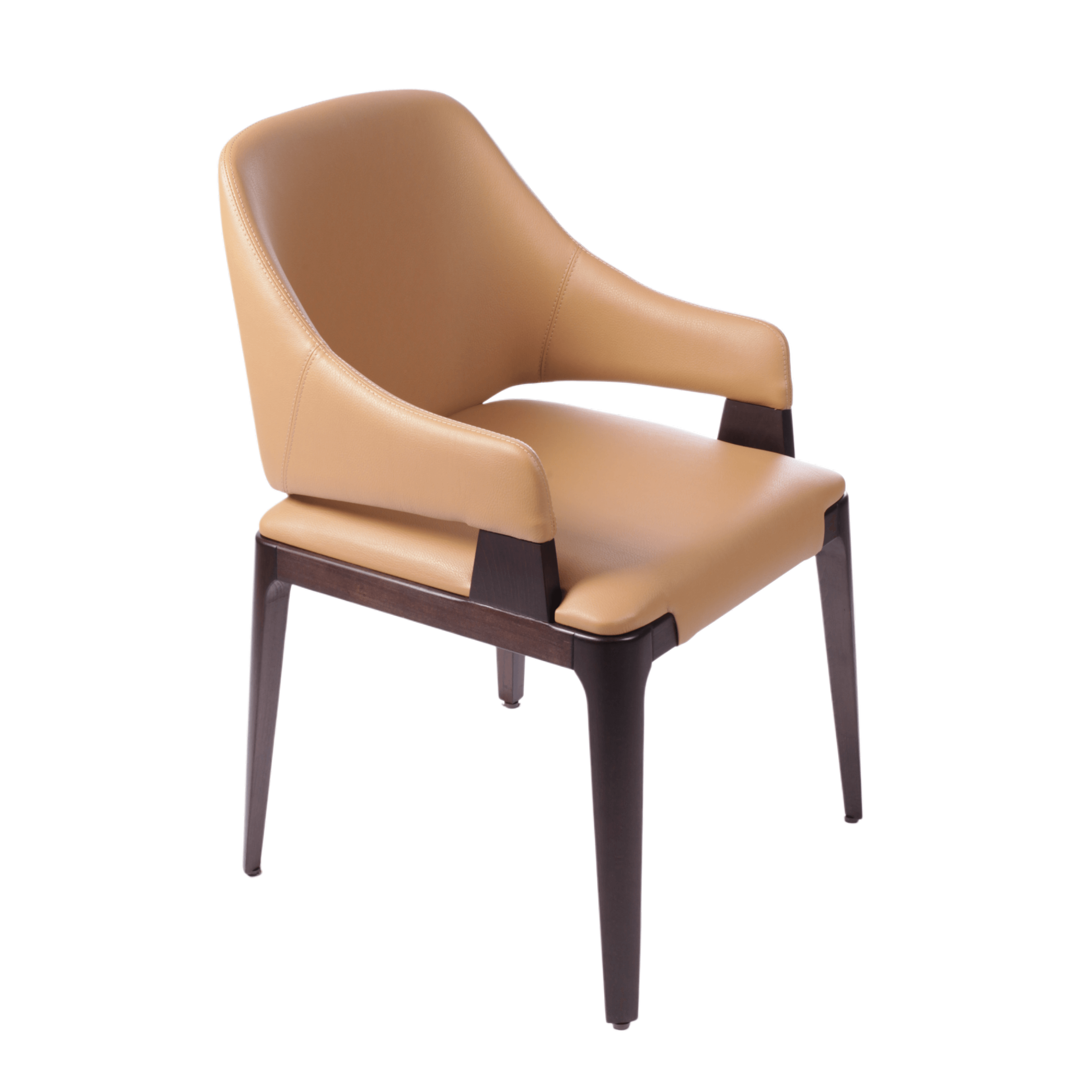 Идеально для современных отелей и ресторанов, где важна каждая деталь интерьера. Мягкий изгиб единой конструкции спинки и подлокотников создает гармоничную форму, а зазор между сиденьем и основанием добавляет дизайну воздушности. Конструкция из массива бука или дуба обеспечивает максимальную прочность, сохраняя изящность внешнего вида. Эргономичная форма гарантирует комфорт для гостей во время продолжительных посиделок.